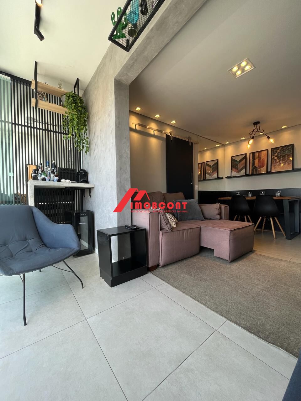 1 suíte, 1 lavabo, sala integrada com varanda.